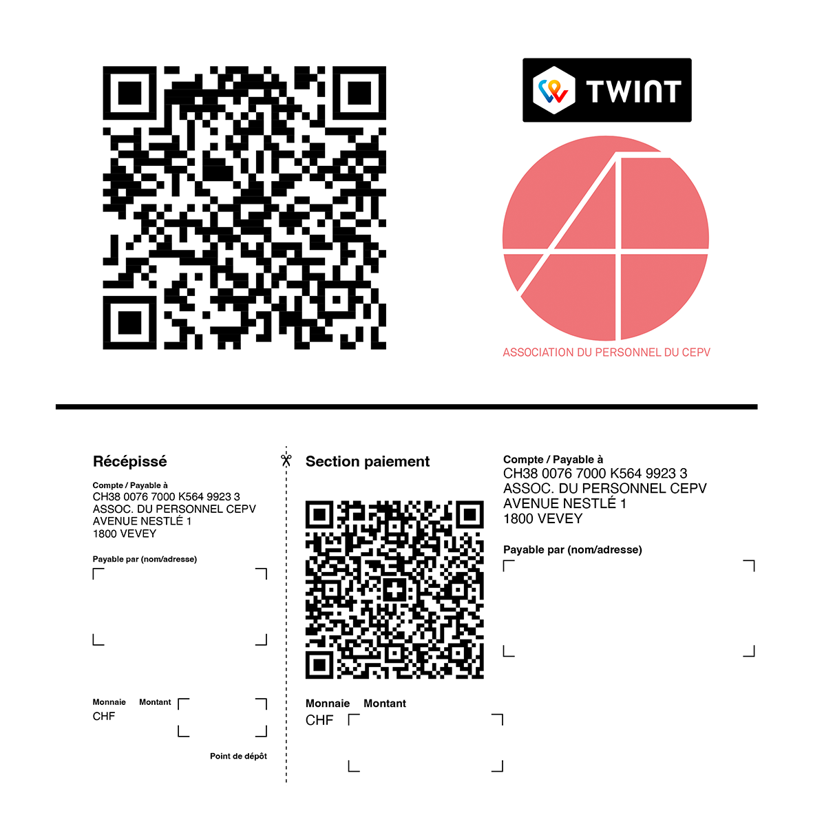 Attention, soit Twint avec votre portable, soit par l'intermédiaire de votre portail bancaire, un peu plus bas ... ce n'est pas pareil !